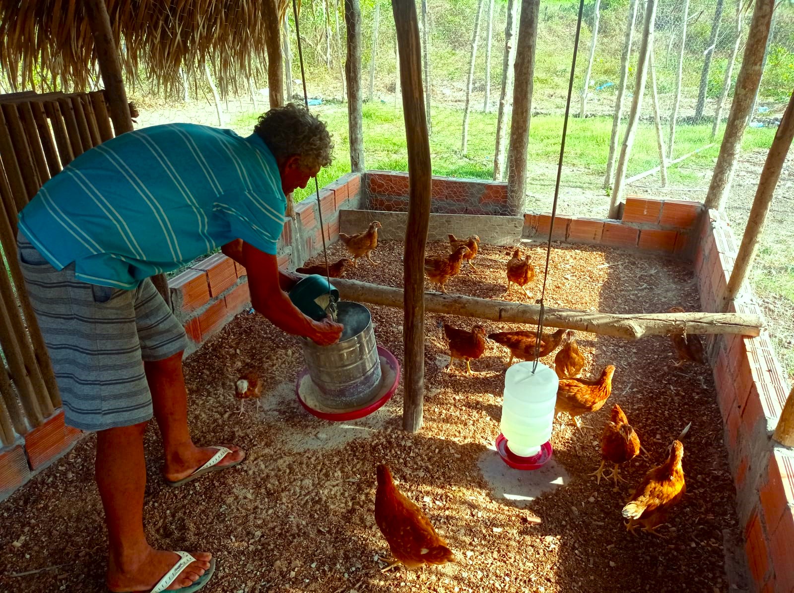 A comunidade conheceu o Sisteminha em 2015; implementado inicialmente por uma única família, ele serviu de modelo para as demais. A experiência vingou e, em novembro de 2020, a comunidade recebeu apoio de projetos governamentais que contemplaram 25 das 103 famílias. Divididos em cinco grupos, os moradores montaram uma fábrica de placas de cimento para construir os 25 tanques em regime de mutirão. Também dessa forma foram montados os 25 galinheiros. O foco são os peixes e as galinhas de postura. De um modo geral, cada família produz de 18 a 20 ovos por dia e cerca de 30 a 40 quilos de tilápia a cada três meses. Para inovar, introduziram o frango de corte branco de peito duplo, uma linhagem industrial.
