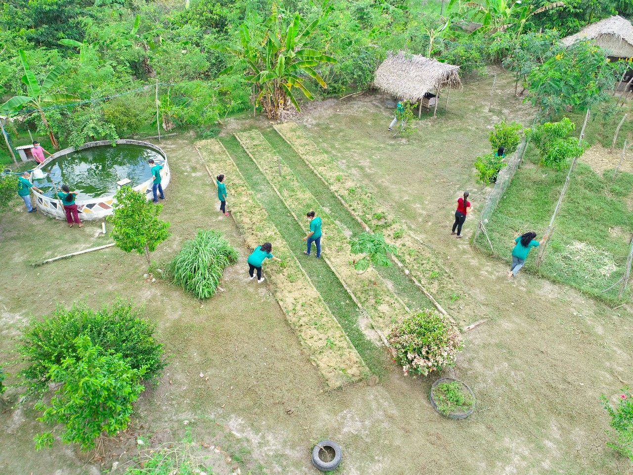 A água residual da criação dos peixes, rica em sólidos orgânicos, é usada na alimentação das minhocas e irrigação dos canteiros convencionais de horticultura e hidroponia. É um biofertilizante que contém macronutrientes como nitrogênio e potássio, além de fósforo, magnésio, enxofre e cálcio. O esterco das aves e pequenos animais, por meio da compostagem, é curtido e se transforma em húmus com auxílio das minhocas. Em seguida esse adubo natural retorna ao cultivo dos vegetais.