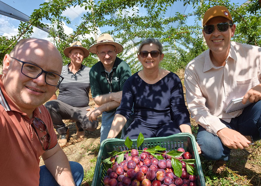 O lançamento da nova cultivar ocorreu no dia 27 de novembro, na propriedade do produtor José Nichetti ( de chapéu, na foto ), localizada na Linha Rio Branco, interior de Pinto Bandeira (RS). O evento, uma parceria entre a Embrapa, a Associação dos Produtores de Frutas de Pinto Bandeira (Asprofruta) e a empresa Silvestrin Frutas, foi realizado com o objetivo de divulgar uma cultivar de nectarina ao mercado, recomendada para cultivo nas regiões Sul e Sudeste do Brasil, oferecendo mais uma opção de produção de frutas de mesa de alta qualidade.