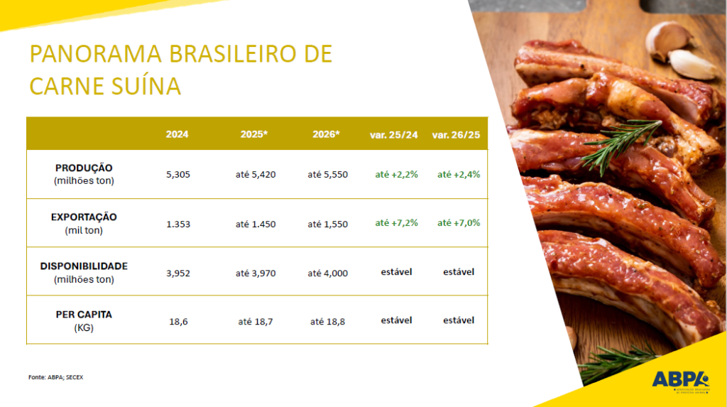 Com presença em mais de 150 países, a proteína animal brasileira também vem sendo promovida em ações internacionais lideradas pela ABPA em parceria com a ApexBrasil, como feiras setoriais e roadshows técnico-institucionais. Na ANUGA 2025, maior feira de alimentos da Europa, por exemplo, o setor fechou US$ 78,6 milhões em negócios imediatos e projetou US$ 703 milhões em exportações nos 12 meses seguintes, consolidando o reposicionamento do Brasil no mercado europeu.