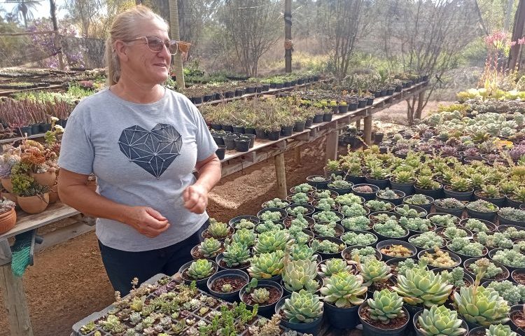 “Como eu já gostava de plantas, foi fácil me adaptar às flores”, relata Dona Lu, como prefere ser chamada. Na chácaraDona Lu Suculentas, de 1,5he na Colônia Agrícola Rajadinha (região administrativa de Planaltina), ela cultiva dezenas de variedades de suculentas e plantas como colar de golfinho, jasmim, azaleia, palmeiras, orquídeas e até murta, uma espécie de cerca-viva. “Comecei utilizando o espaço da varanda, hoje tenho três estufas”, comemora.