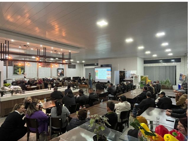 Leandro apresentou o ciclo biológico das pragas, a relação com as condições climáticas e o funcionamento do sistema de infecção das plantas de milho pelas pragas. Falou ainda sobre a escolha de híbridos, manejo do uso de produtos biológicos e a compatibilidade com fungicidas e herbicidas. Por fim, destacou que a lagarta-do-cartucho (Spodoptera frugiperda), uma das principais pragas do milho, vem sendo cada vez mais tolerada por híbridos e inseticidas, podendo causar danos significativos à cultura e reduzir a produtividade. O evento também contou com a apresentação dos portfólios das empresas parceiras: Bortoluzzi Sementes, Koppert, Agroceres e Ihara.