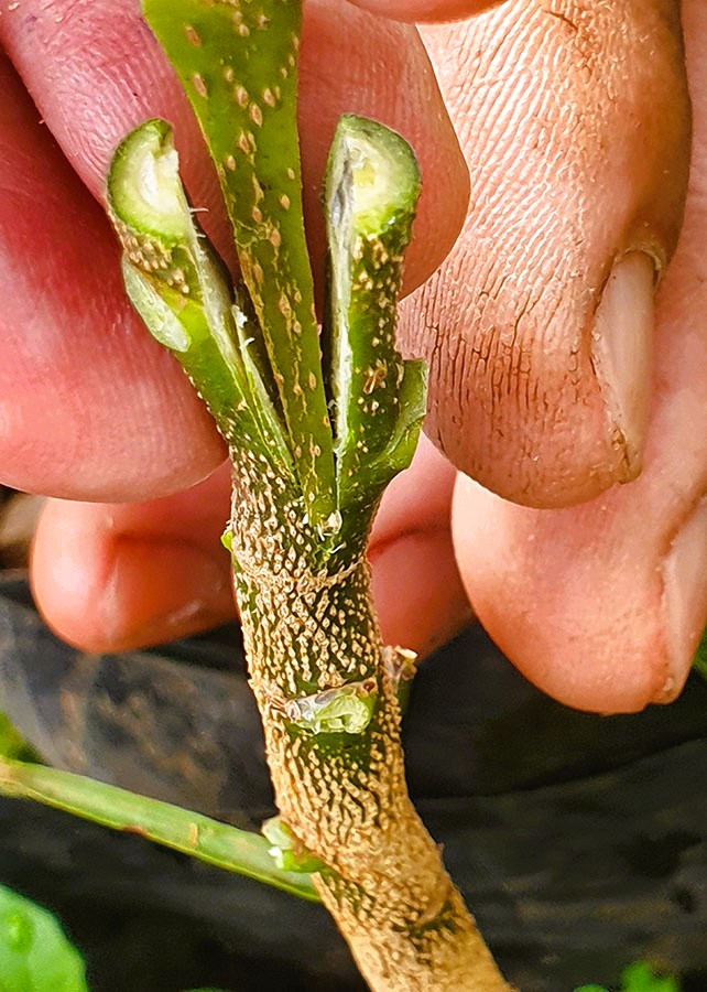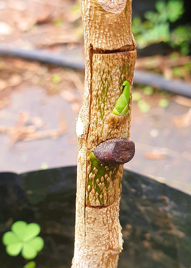 O experimento mostrou que o desempenho das plantas foi diferente de acordo com o sistema de condução. “Consideramos o sistema de produção de mudas em saco plástico a pleno sol o melhor, com o qual conseguimos mais de 50% de pegamento nos três tipos de enxertia que utilizamos em nosso estudo, com destaque para borbulhia, seguida da garfagem inglesa simples e da garfagem em fenda cheia”, informa Lima.
