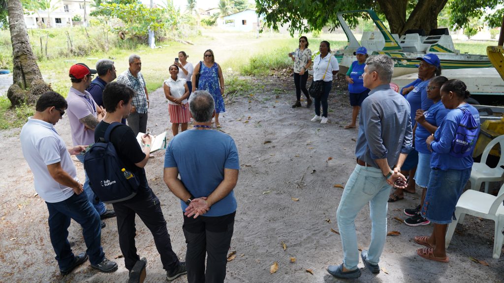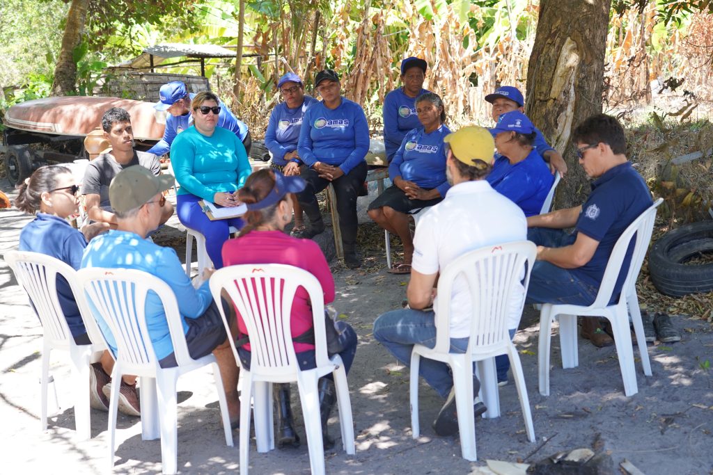 O pesquisador Adriano Prysthon, da Embrapa Alimentos e Territórios, abordou com o grupo os princípios de participação para a construção de uma mentalidade que possa melhorar a governança da comunidade pesqueira local. Prysthon, engenheiro de pesca pela Universidade Federal Rural de Pernambuco (UFRPE), falou sobre a eficácia do trabalho em conjunto e sua importância afetiva, que é a segurança do trabalho em sociedade.